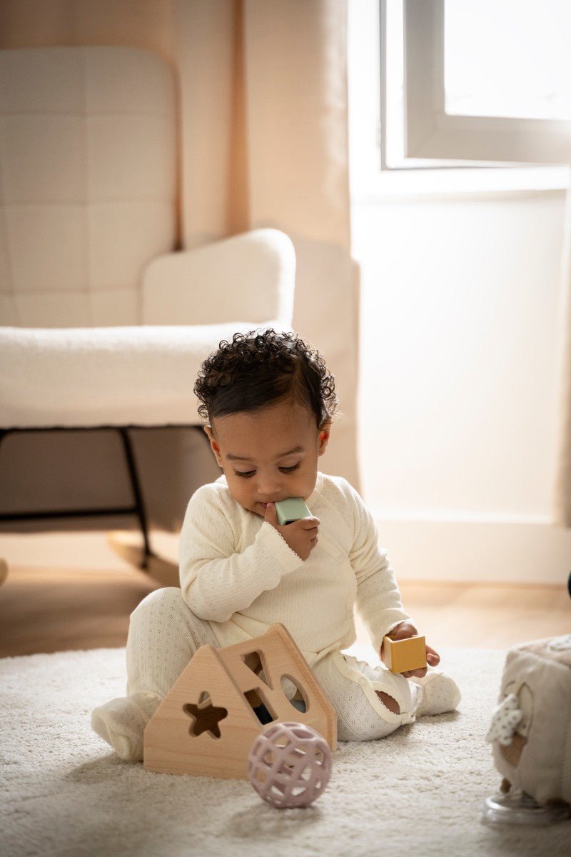 Leikkipallot sopivat lisäksi erinomaisesti puruleluiksi . . Pehmeä silikonimateriaali helpottaa hampaiden puhkeamista ja rauhoittaa herkkiä ikeniä. Lisäksi ajattomat värit ja moderni muotoilu sopivat upeasti mihin tahansa vauvanhuoneeseen tai leikkitilaan.