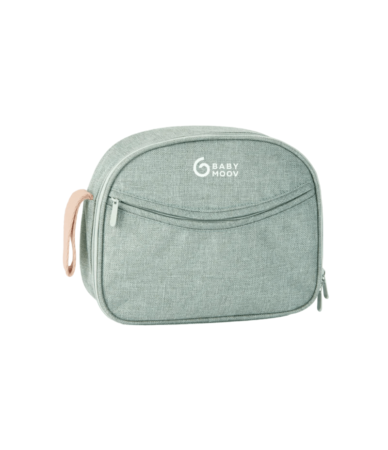 • 10 välttämätöntä vauvanhoitotarviketta: digitaalinen lämpömittari, jossa on joustava suojus, nenänimuri suusuuttimella (varustettu säiliöllä, joka estää nesteen takaisinvirtauksen), pyöristetyt sakset, kynsisakset, kynsiviila, kylpytermometri, puinen harja vuohenkarvalla, silikoninen hierontaharja ikenille, jäähdytettävä purulelu ja 3 uudelleenkäytettävää puuvillapyyhettä. • Kotelo on valmistettu GRS-sertifioidusta (Global Recycled Standard) kierrätetystä polyesteristä. Harja on FSC-sertifioitua puuta. • Helppo kuljettaa ripustuskahvan ansiosta. • Käytännöllinen vetoketjullisen aukon, joustavien nauhojen ja sisätaskujen ansiosta, jotka helpottavat vauvan tarvikkeiden järjestämistä ja säilyttämistä. • Trendikäs melange-kankaansa ja kauniin vesivihreän värinsä ansiosta.