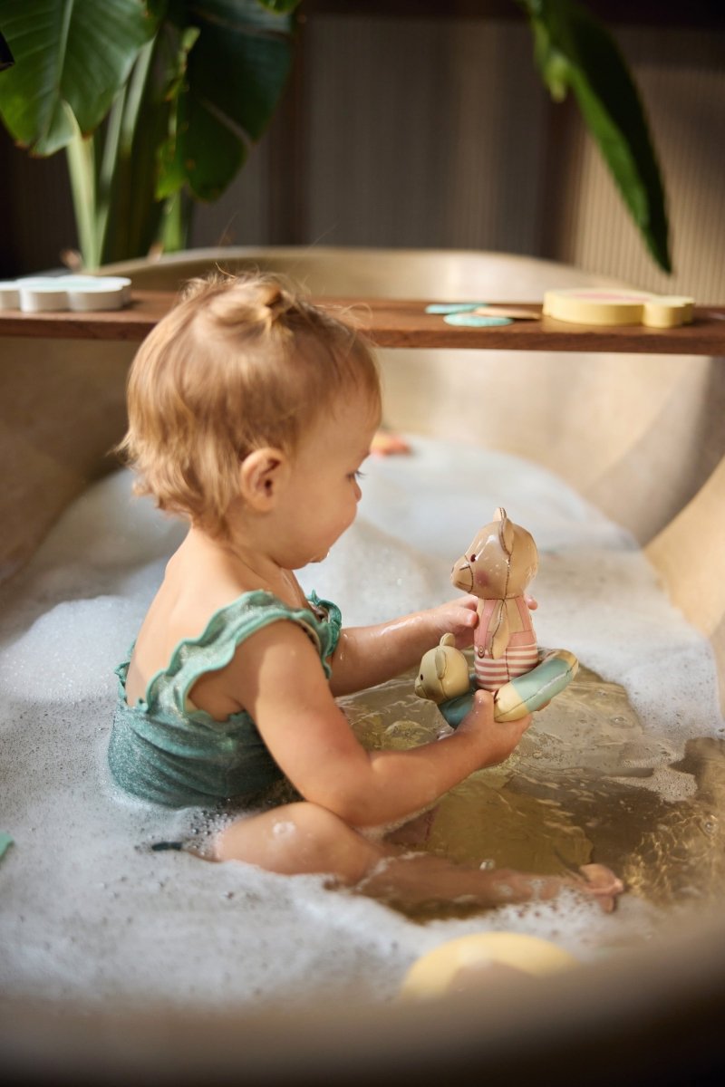 Kylpyhetket muuttuvat vieläkin hauskemmiksi tämän kelluvan kylpynuken avulla! Tämä kelluva kylpynukke on lapsellesi tuttu leikkikaveri kylpyhetkien aikana. Irrotettava rengas tuo vaihtelua: yhdessä nuken kanssa tai yksin vedessä. Materiaali on vedenkestävää ja helppo puhdistaa. Pehmeiden muotojen ja turvallisen otteen ansiosta se on ihanteellinen pienille käsille. Näin leikki yhdistyy helppouteen ja hauskuuteen.