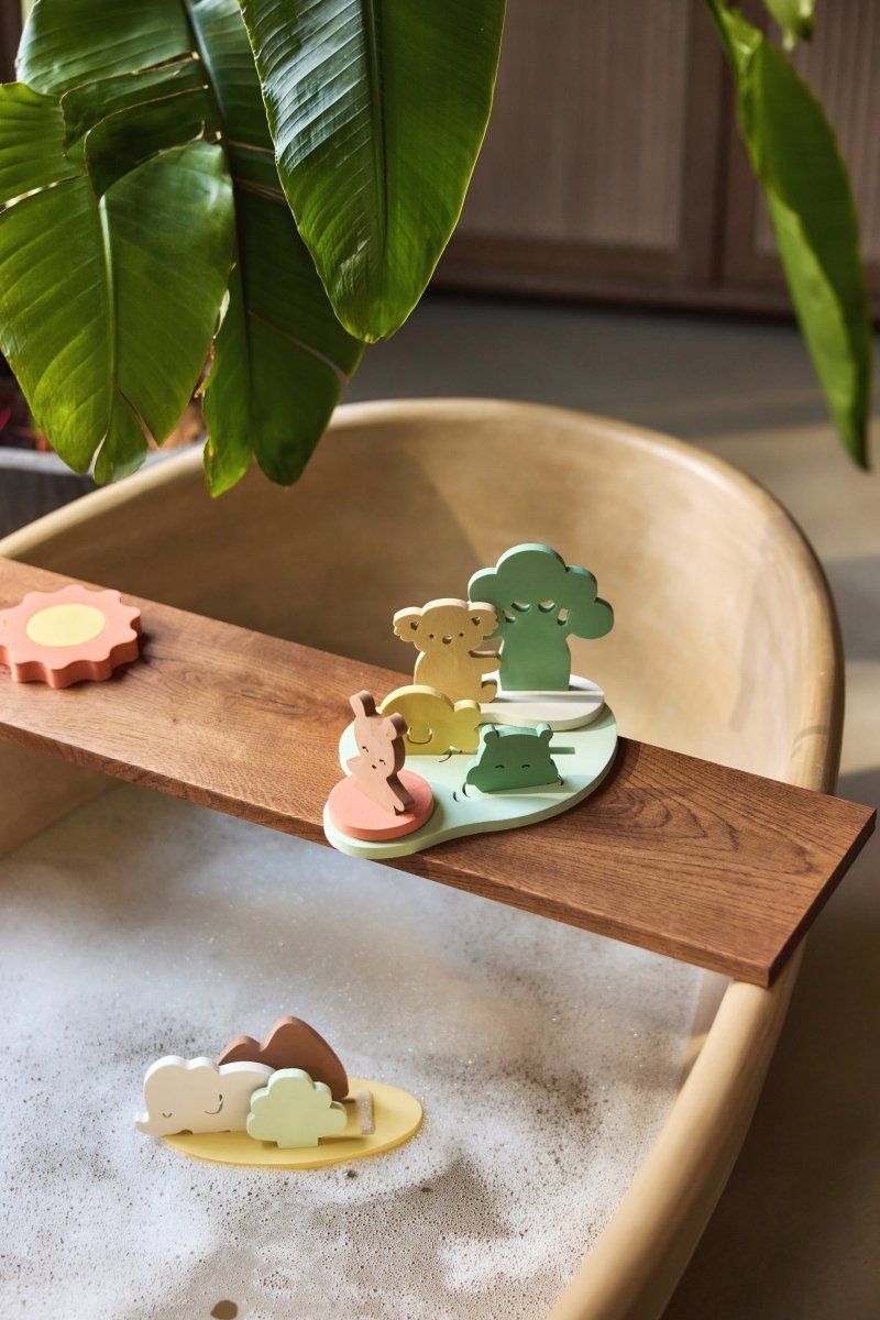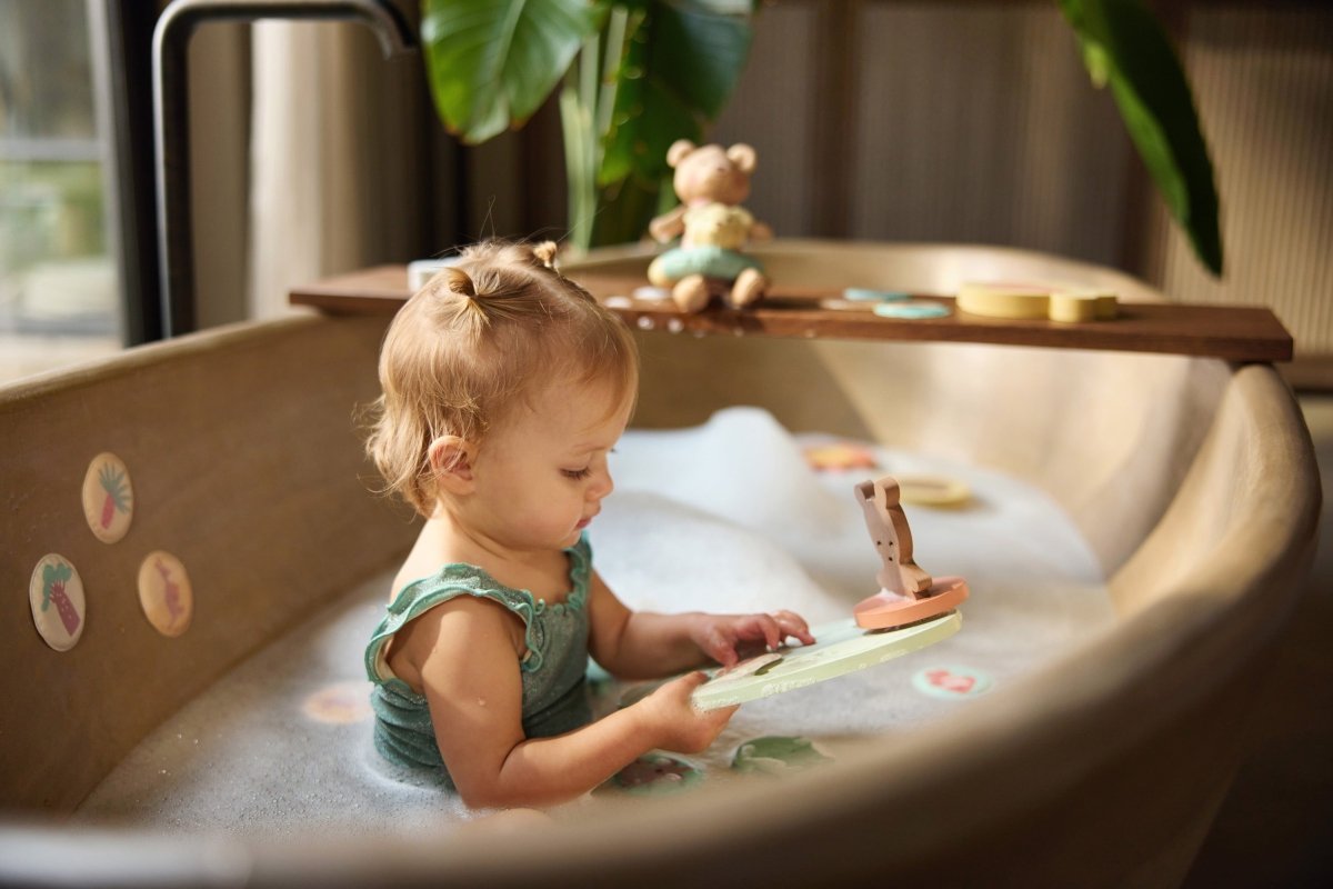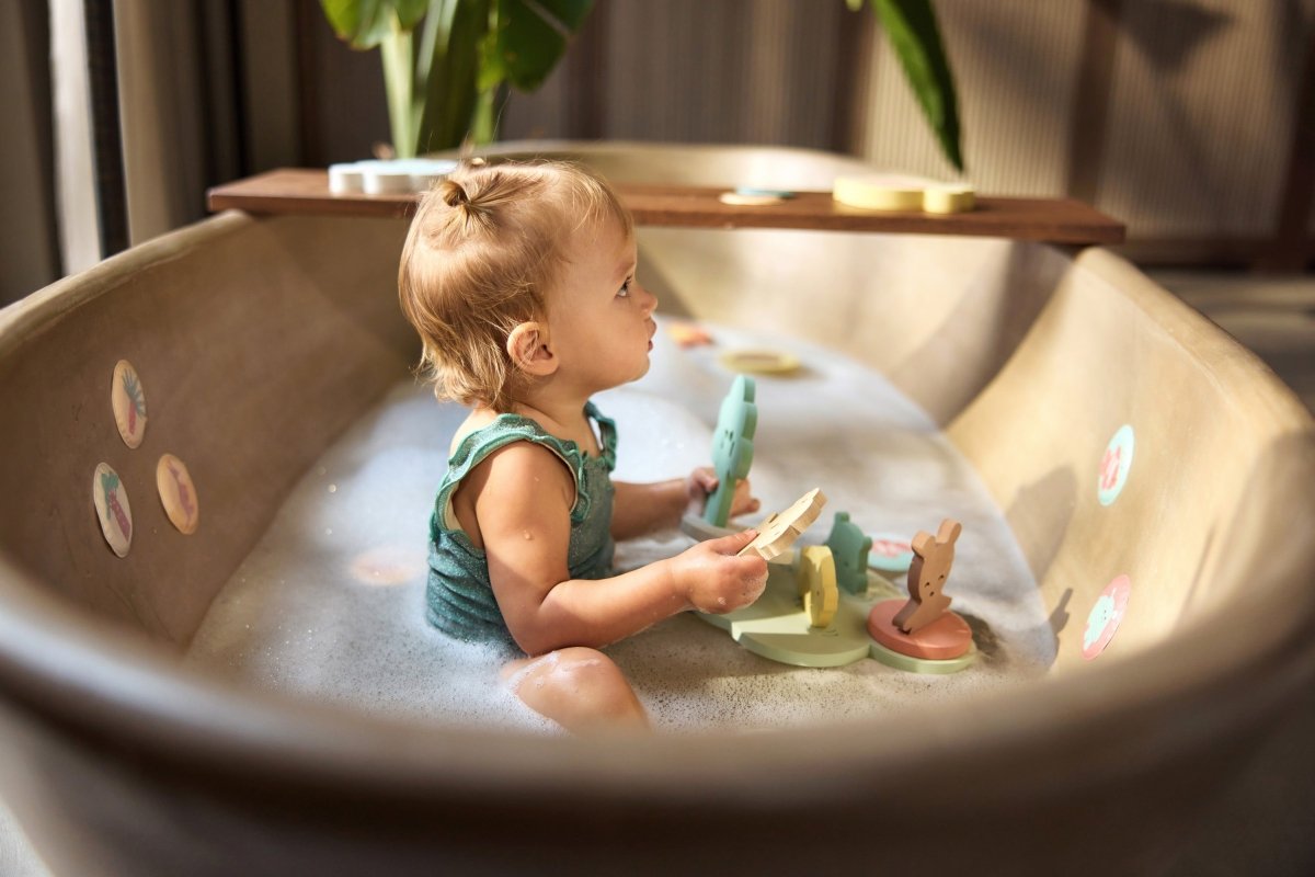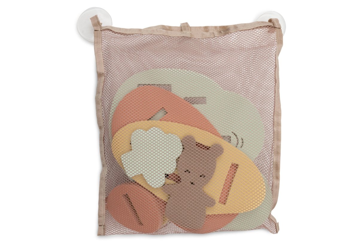 Tämän vaahtomuovisen kylpyhuonesettien avulla lapsesi voi rakentaa oman maailmansa kylpyammeessa. Eikö olekin hauskaa!? Irralliset palapelin palat kelluvat ja ne on helppo koota yhteen. Näin lapsellasi on joka kerta uusi setti, jolla leikkiä. Kuivaa osat hyvin kylpyhetken jälkeen ja säilytä ne kätevästi mukana tulevassa verkkopussissa. Imukuppien ansiosta setin voi ripustaa kätevästi kylpyammeen tai suihkun reunaan. Näin kaikki pysyy yhdessä ja on heti valmiina seuraavaa kertaa varten.