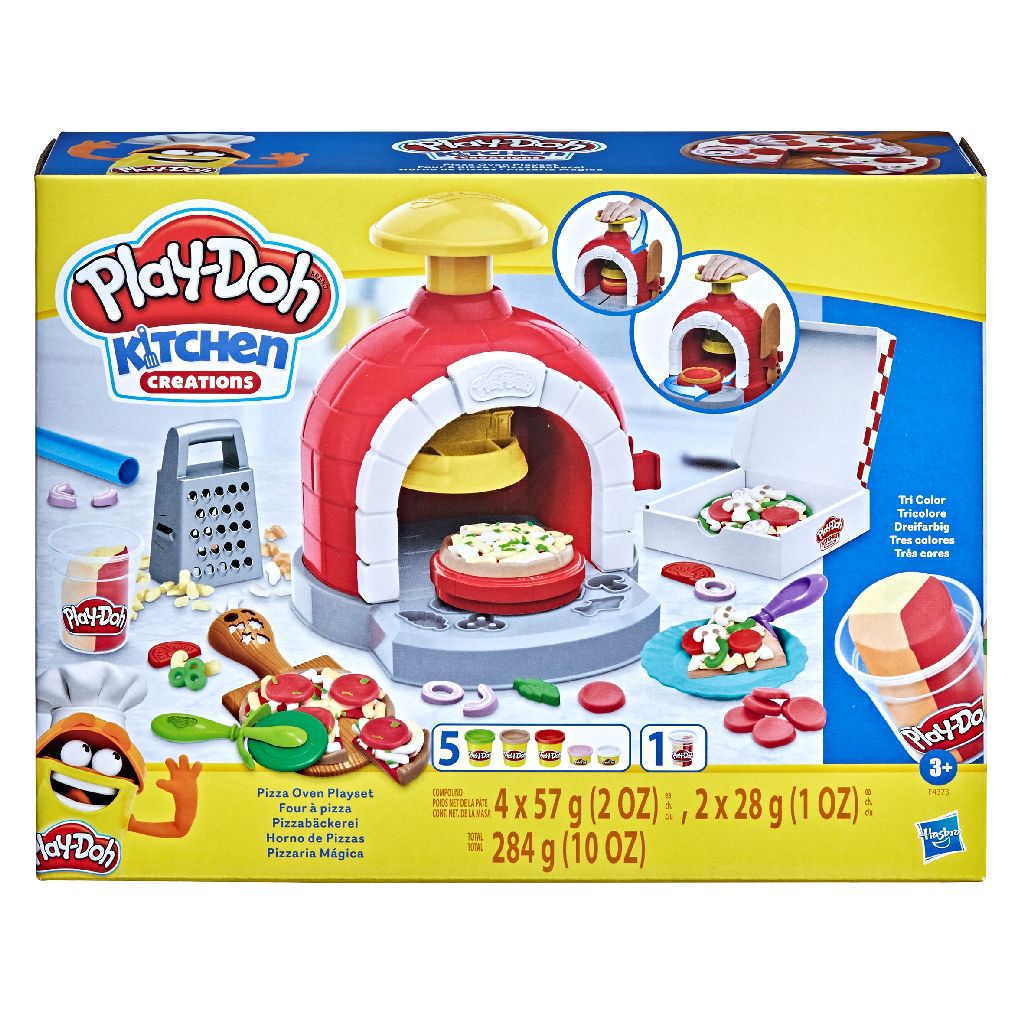 Tämän lelupizzauunin avulla mielikuvitus on päivän menu! Lapset voivat leikkiä kokkeja ja luoda luovia Play-Doh-pizzoja yli 25 erilaisella leikkitoppingilla. Pizzasetti sisältää 8 työkalua tulevien kokkien luovuuden herättämiseksi sekä 6 purkkia muovailuvahaa, mukaan lukien kolmen värin pizzateemainen purkki. Lapset voivat myös valmistaa leikkipizzansa toimitusta varten pizzalaatikossa. Tämä Play-Doh-setti tarjoaa paljon leikkimielenrauhaa ja on loistava lahja tai askartelulelu 3-vuotiaille ja sitä vanhemmille lapsille!