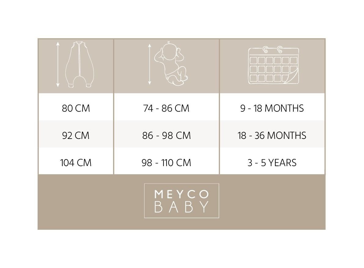 De lengte van je kindje is belangrijker dan de leeftijd om de juiste maat van de slaapzak te bepalen. Als de slaapzak te groot is, dan kan je baby wegzakken. Gebruik nooit een slaapzak als het hoofd van je kleintje door de nekopening past. Zorg daarom altijd goed voor de juiste maat slaapzak.