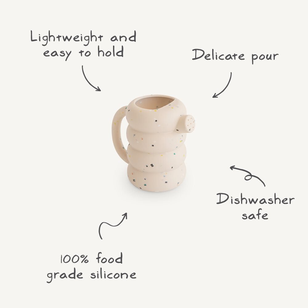 Tee kylpyhetkistä ja ulkoilusta vieläkin hauskempaa Mushie-silikonikastelukannulla.
