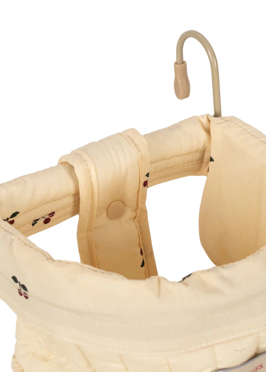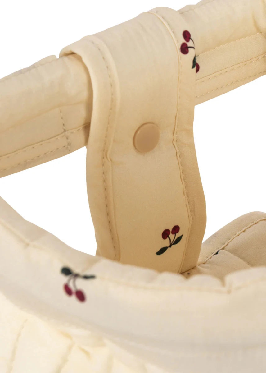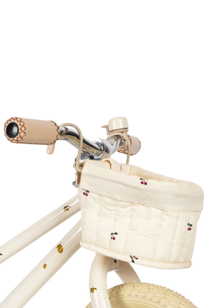 Cherry-nukkituoli on suloinen ja kätevä polkupyörän istuin, jonka avulla lapset voivat ottaa lempinukkensa mukaan seikkailullisille ajeluille. Istuin sopii tasapainopyörille ja on helppo kiinnittää pyörän etuosaan. Valmistettu kevyestä, pehmeästä puuvillasta mukavaa kuljetusta varten.