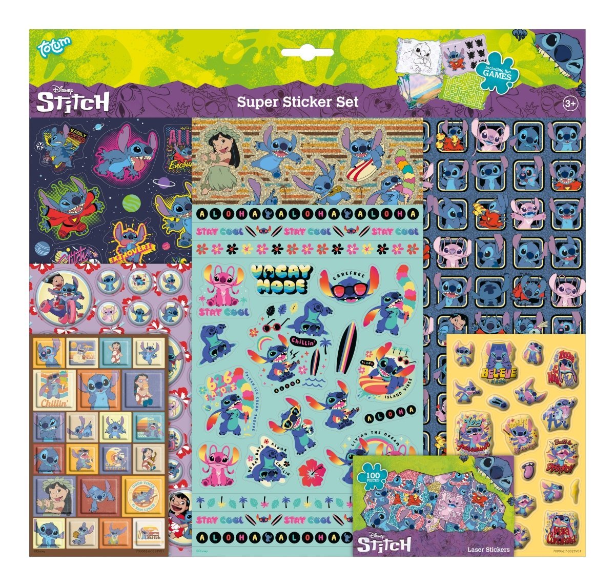 - 3 -vuotiaille ja sitä vanhemmille lapsille - sisältää 3 peliä ja pelitaustan - 7 tarra-arkkia eri materiaaleista ja Stitch-kuvioilla - 1 pussi, jossa on noin 100 laserleikattua tarraa - Sisältää 2 isoa arkkia metallisia kimallustarroja - 2 arkkia 3D-puffytarroja - Stimuloi mielikuvitusta ja luovuutta: herätä oma maailmasi suosikkihahmosi, sarjasi tai elokuvasi parissa eloon