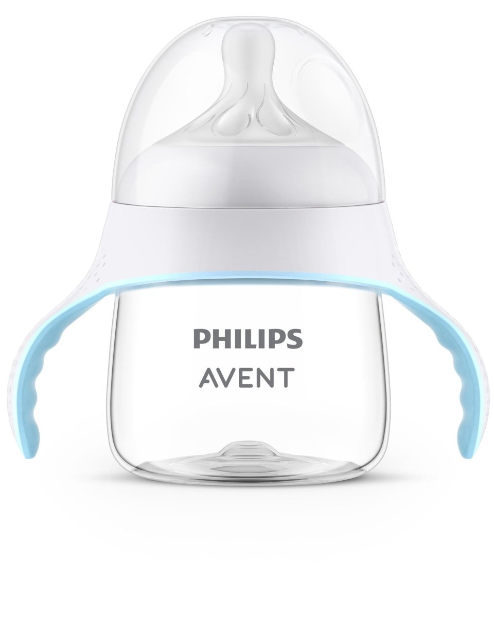 Avent Natural Siirtymäkuppi 6M+ Uusi Natural-harjoittelukuppimme helpottaa siirtymistä pullosta kuppiin. Pehmeiden kahvojen ansiosta vauva voi pitää pulloa itse kädessään ja juoda samalla tutusta tutista. Tee siirtymisestä juomakuppiin helpompaa vauvallesi