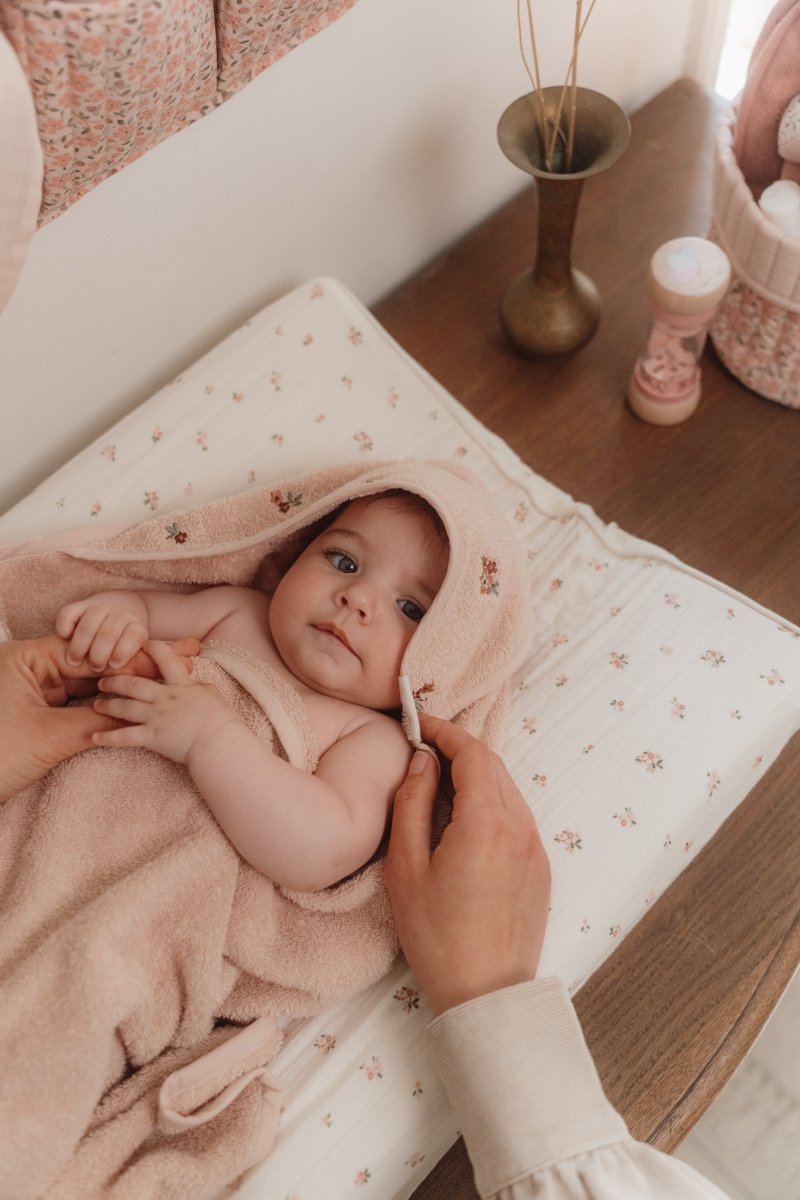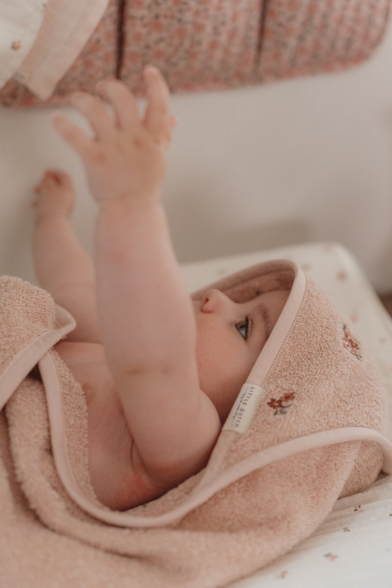 Kääri pikkuisesi lämpöön ja pehmeyteen tällä kylpyviitalla. Valmistettu 100% orgaanisesta puuvillafroteesta100%, joka tuntuu ihanan pehmeältä ja mukavalta. Suunniteltu sekä käytännöllisyyttä että tyylikkyyttä silmällä pitäen, pehmeä popliinihuppu tarjoaa turvaa ja mukavuutta kylpyhetken jälkeen. Pyyhe on kauniin vaaleanpunainen Blossom-väri, ja huppua koristavat suloiset brodeeratut kukat Fairy Garden -kokoelmasta.