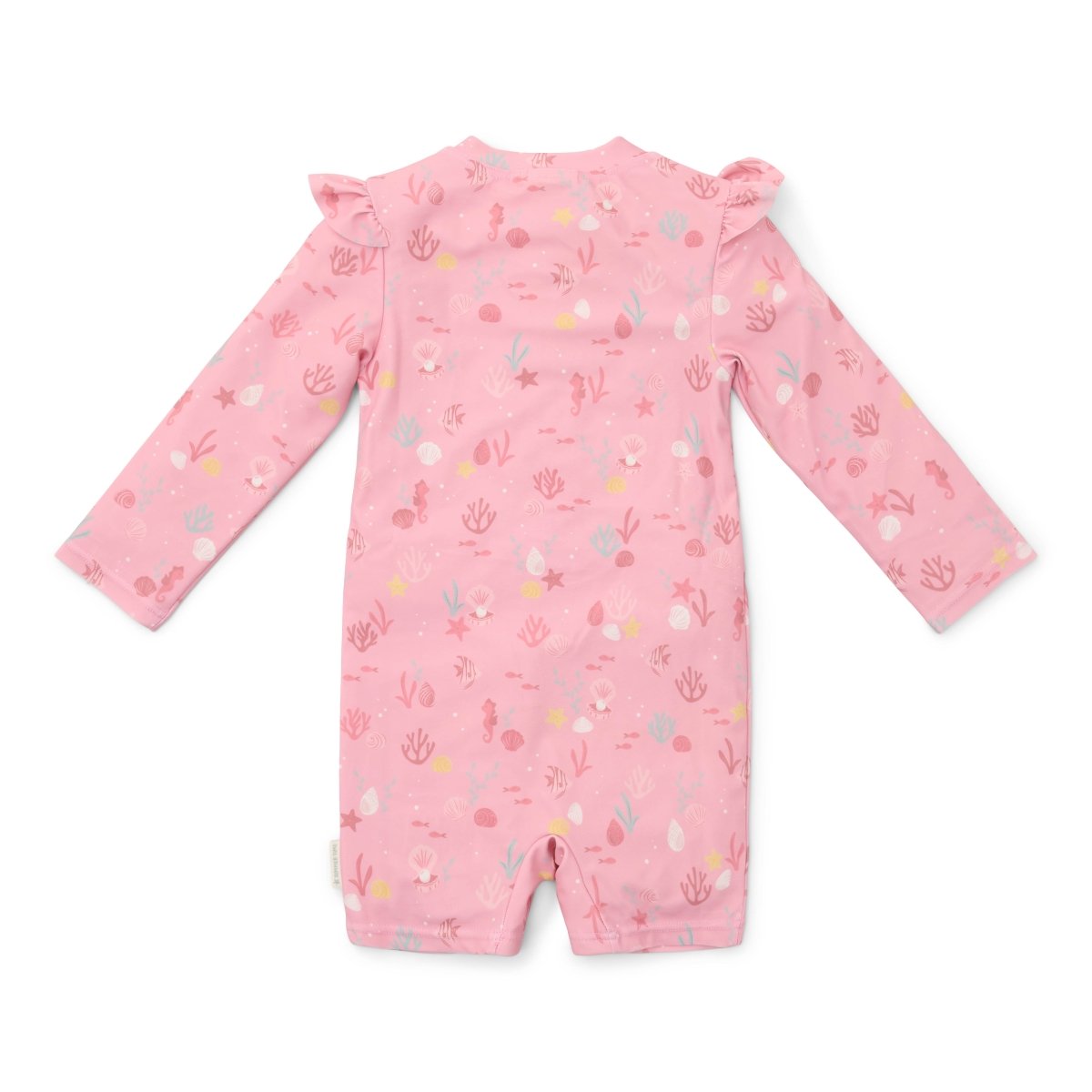 Sukella kesään tässä suloisessa uimapuvussa, jossa on viehättävä Ocean Treasures -kuosi. Sen kaunis vaaleanpunainen väri on koristeltu merihevosilla, koralleilla ja simpukoilla, mikä luo upean vedenalaisen teeman. Se on täydellinen valinta rannalle tai uima-altaalle vietettävään päivään ja yhdistää mukavuuden ja eleganssin sekä leikkisät röyhelöt olkapäillä, jotta pikku tyttösi loistaa tyylikkäästi.
