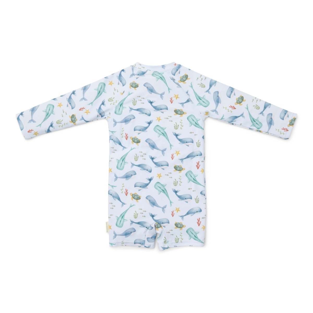 Hyppää veteen ja valmistaudu tutustumaan meren ihmeisiin. Tässä suloisessa Ocean Sea Life -uimapuvussa lapsesi on rannan tähti. Viehättävä vaaleansininen malli, joka on koristeltu meressä elegantisti uivilla valailla, vie lapsesi upeimmille meriseikkailuille.