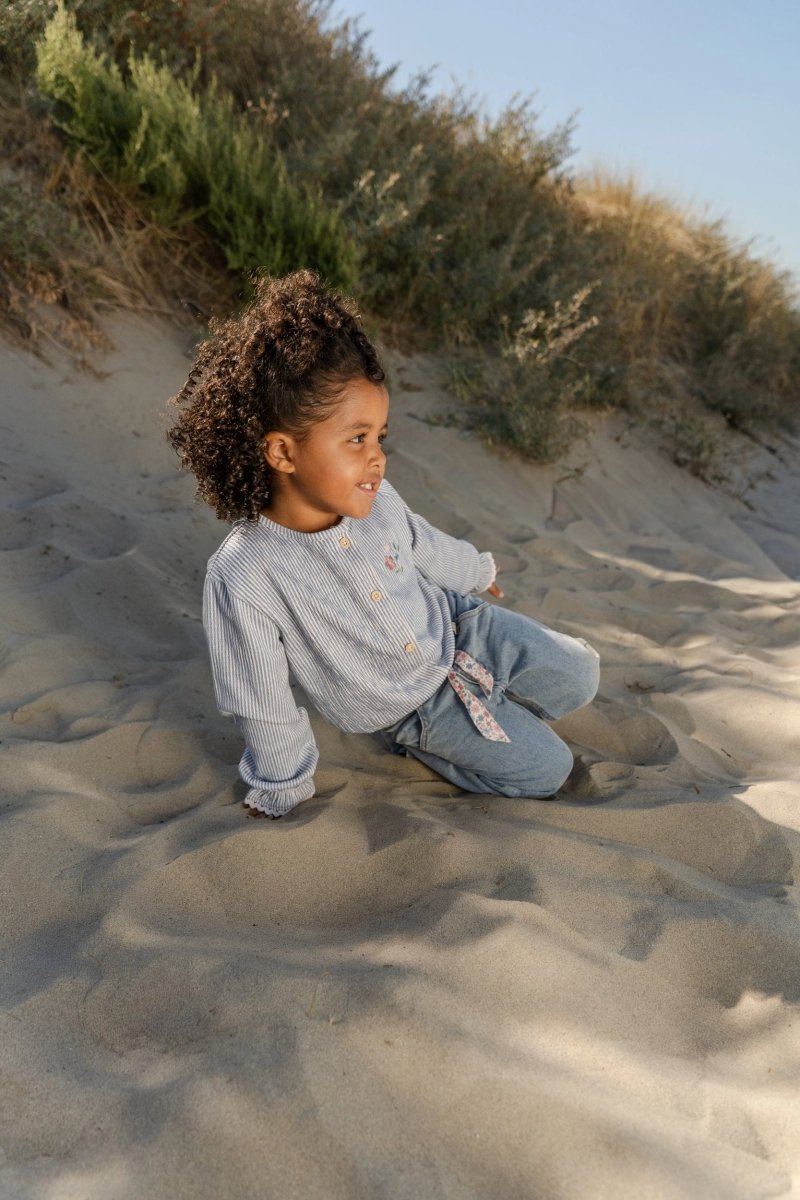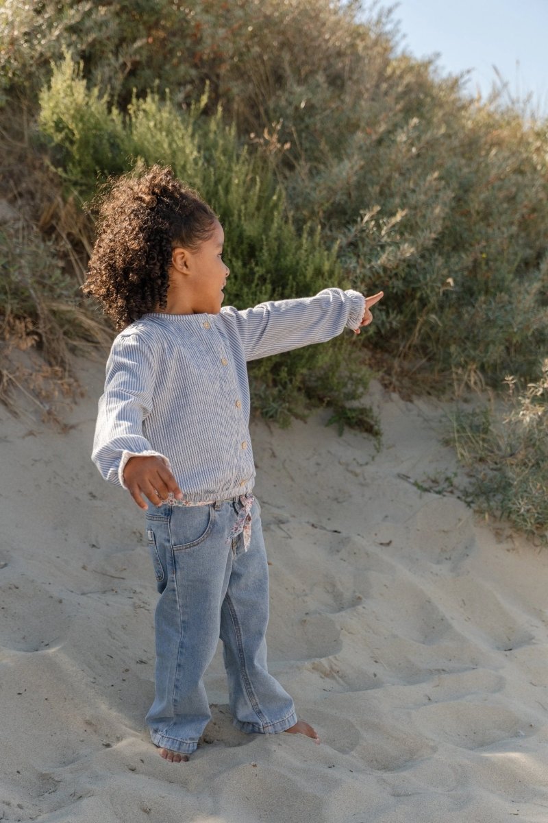 Etupuolella olevat puun näköiset napit helpottavat pukemista ja riisumista. Elastiset, röyhelöiset hihat tuovat leikkisän lisän, kun taas rinnassa olevat hienot brodeeratut kukat lisäävät suloisen yksityiskohdan. Elastinen helma takaa kauniin ja mukavan istuvuuden. Valmistettu luomupuuvillasta ja Oeko-Tex-sertifioitu – turvallinen ja vastuullinen valinta joka päivä. Monipuolinen suosikki loputtomiin yhteisiin hetkiin.