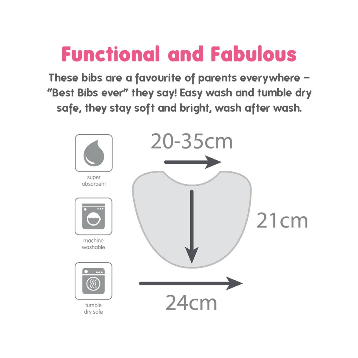 Ruokalappu on helppo huuhdella, se kuivuu nopeasti ja sopii 40 asteen pesukoneeseen ja kuivausrumpuun. Pehmeä, korkealaatuinen puuvilla tuntuu mukavalta vauvan iholla ja sitä voi käyttää myös suun pyyhkimiseen. Säädettävän painonappikiinnityksen ansiosta, jossa ei ole naruja tai tarranauhoja, ruokalappu on turvallinen ja käytännöllinen.
