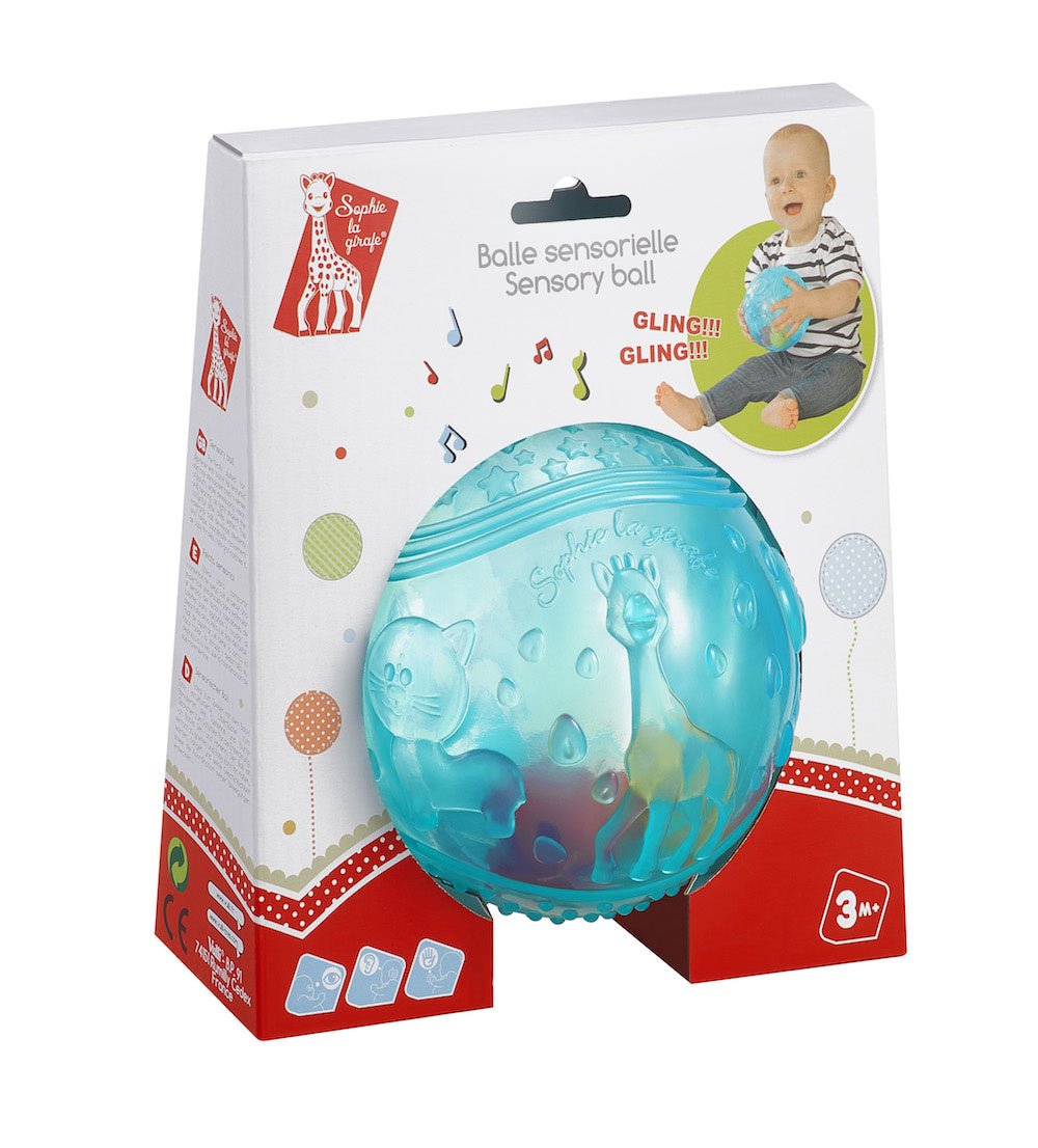 Sophie-kirahvi Tämä pallo on suunniteltu stimuloimaan vauvan aisteja! Pallon pinnassa on erilaisia tekstuureja. Tämän ansiosta vauva voi tutustua Sophie-kirahviin, hänen ystäviinsä ja erilaisiin muotoihin. Pallo on ihanteellinen kätevyyden ja liikkeiden kehittämiseen, ja siinä on värillisiä kuplia, jotka stimuloivat kuuloa ja näköä. Kevyt ja helppo tarttua; Stimuloivat aisteja; Ikä: alkaen 3 kuukautta; Mitat: 12 x 12 cm; Pakkaus: valko-punainen laatikko.