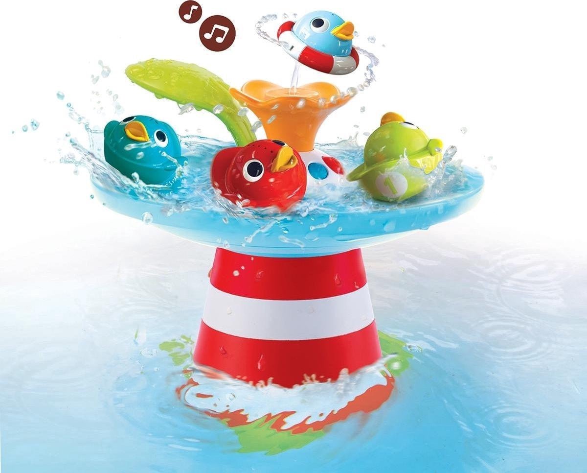 Suihkulähde imee vettä kylpyammeesta ja suihkuttaa sen ilmaan, kun lapsesi painaa lehteä alas. Suihkulähde suihkuttaa vettä, kun neljä värikästä ankkaa kilpailee vesiradalla. Jokaisella ankan on oma, ainutlaatuinen ja erilainen vesisuihkuefekti. Sammuu automaattisesti 3 minuutin kuluttua. Musical Duck Race toimii 4 AA-paristolla. (ei sisälly toimitukseen)